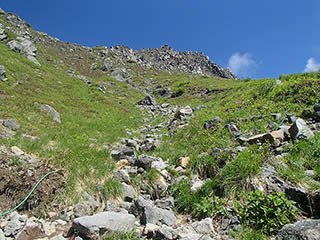 ふと前方を見ると、いきなり稜線にガスがかかり始めていました。ええっ、まさかという思いでした。