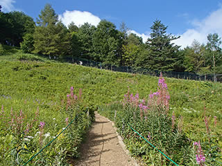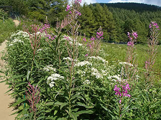 斜面中間部のヤナギラン群生地。