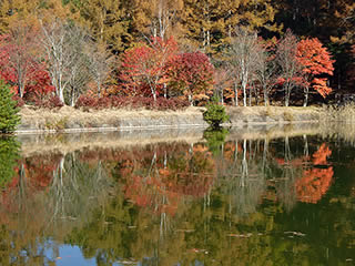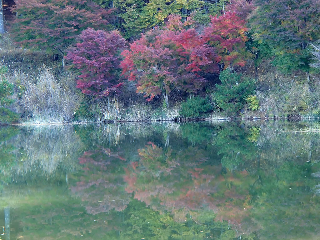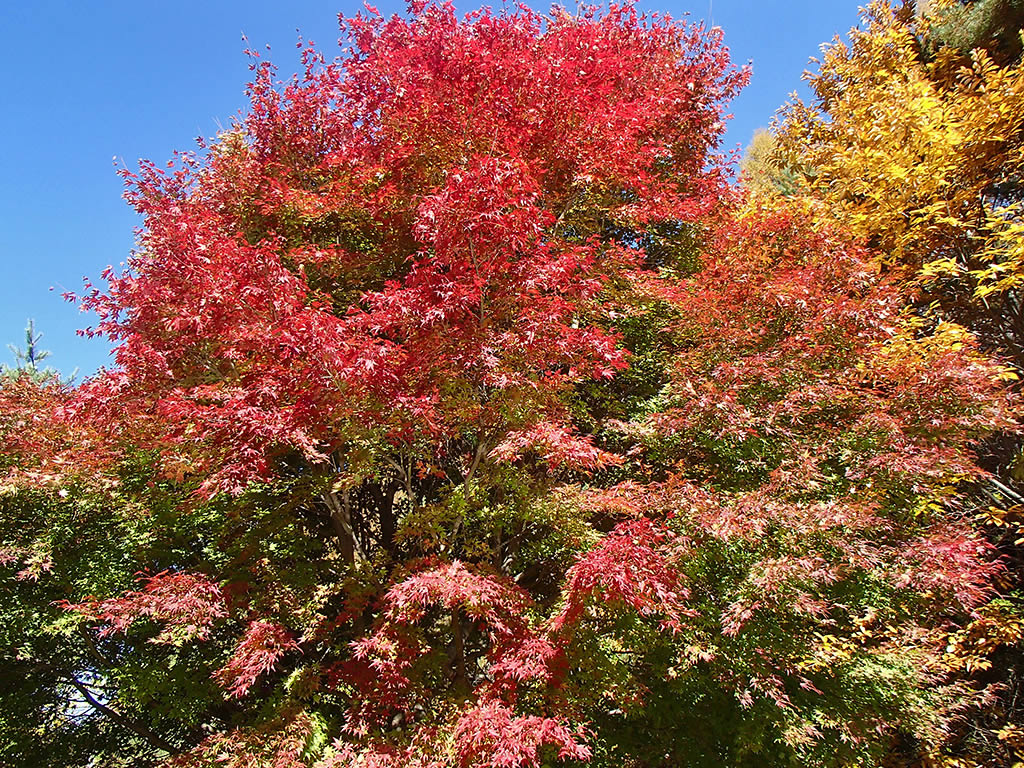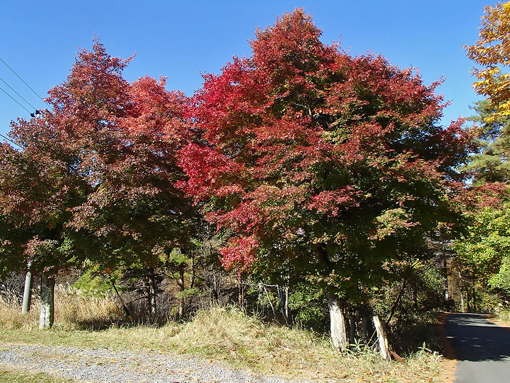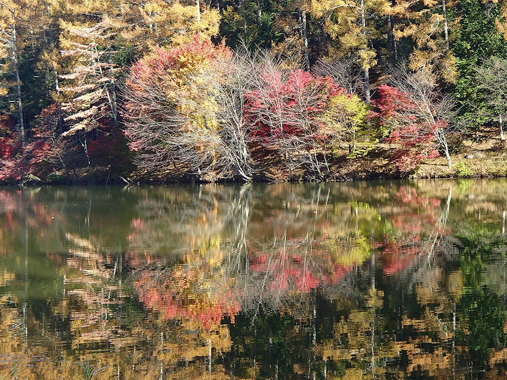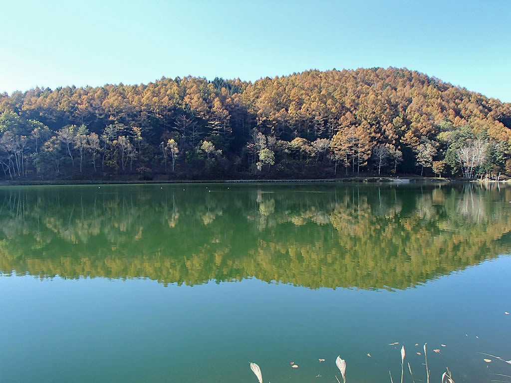 蓼の海を通り過ぎて、すぐ隣のいずみ湖(下諏訪町)に向かいます。途中の紅葉が見事で思わず車を駐めてぱちり。