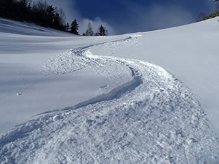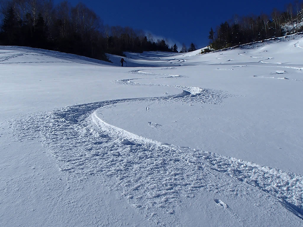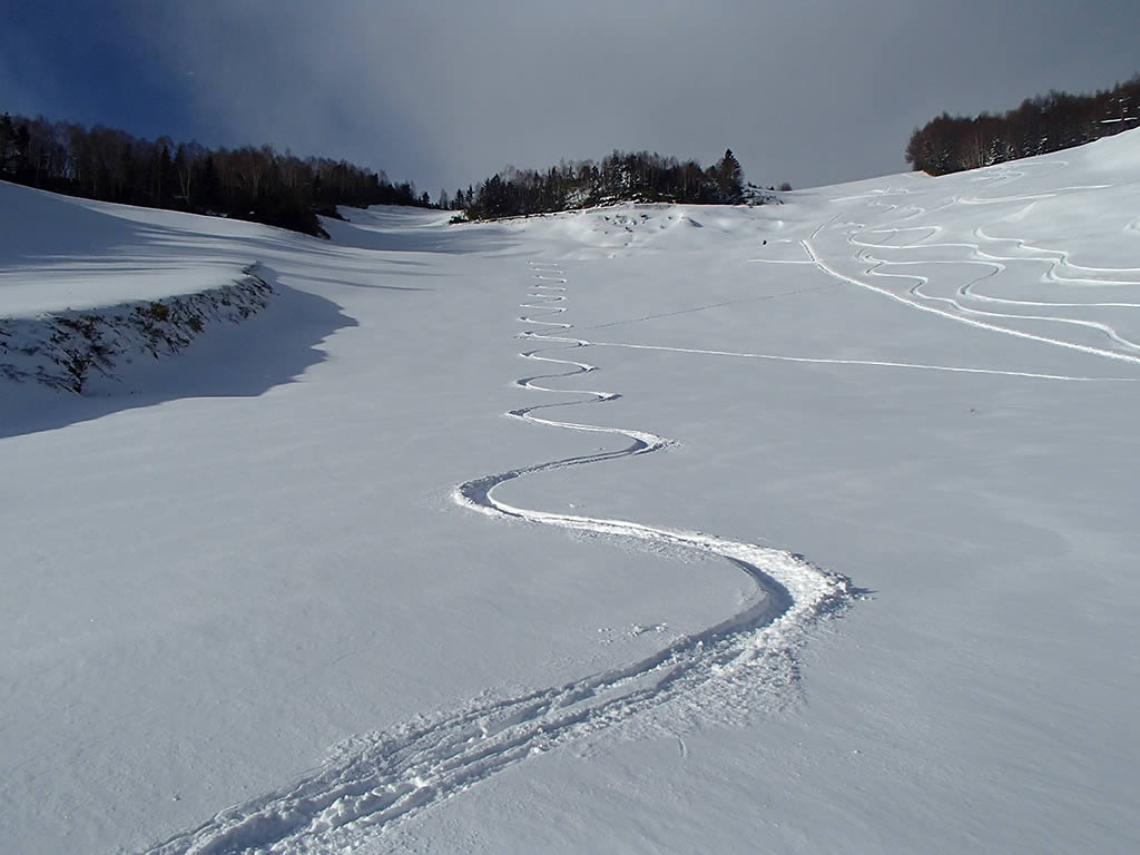 新雪は15cmから20cmほどで吹き溜まりでは場所によって30cmほどでした。前日の雨の影響で下に堅い層があり若干底付きしましたが、でも久しぶりのパウダーを気持ち良く楽しむことが出来ました。