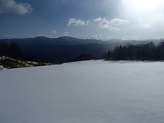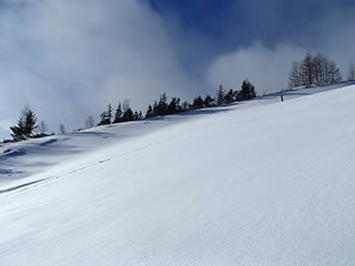 次は南側の段差の上の斜面を滑ってみましょう。前回は隠れた岩に板を傷つけられましたが(^^;、今回はもう大丈夫でしょう。