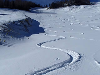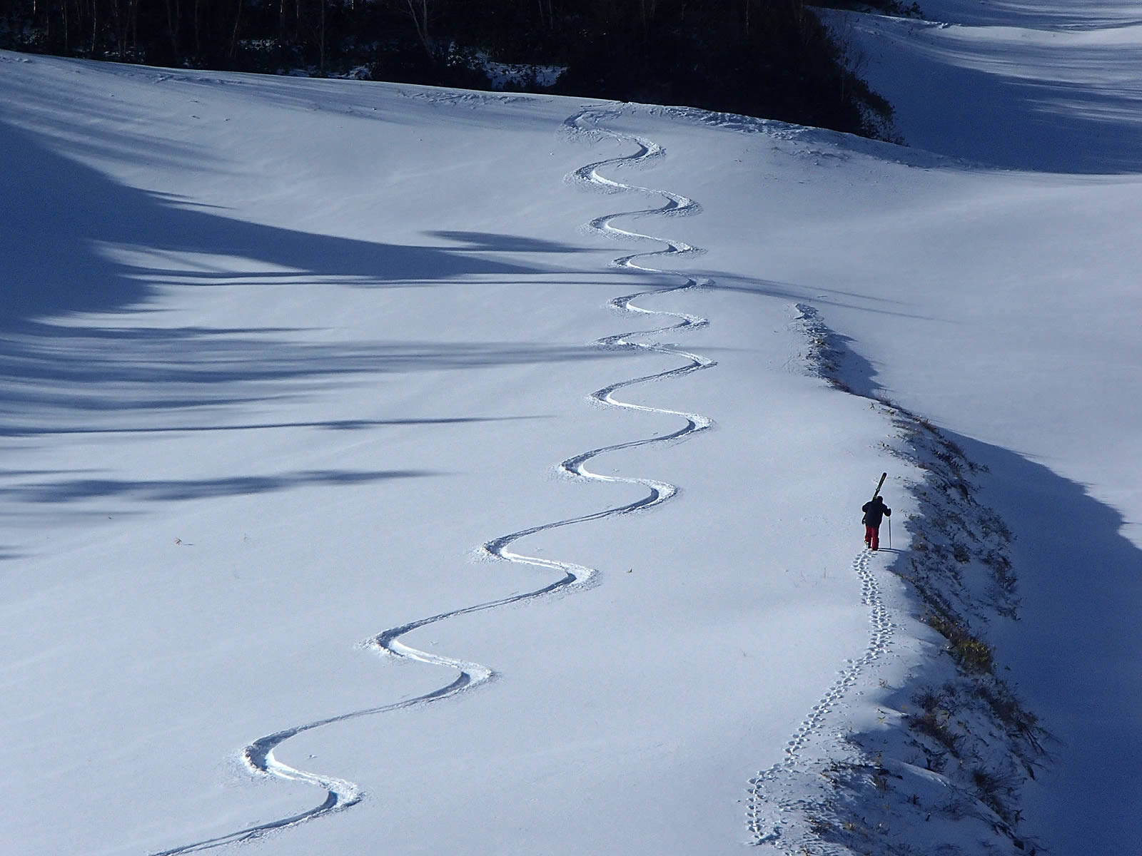 この時間、こちら側の斜面を滑ったのは私だけです。