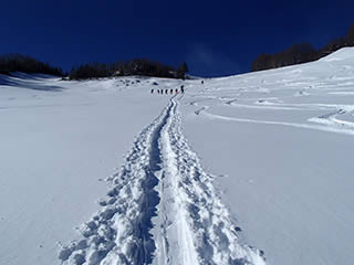 シールをつけて再び登り返します。徐々に人も増えてきました。