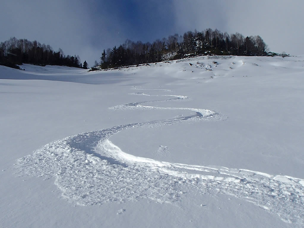 時々新雪の下の堅い層に当たりますが、それほど気になりません。