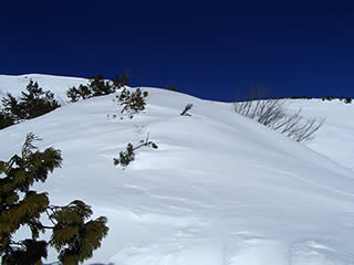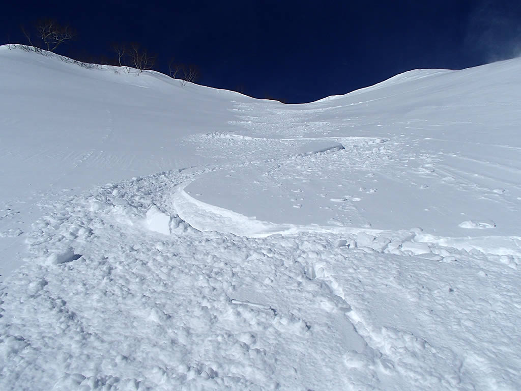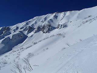 斜面上部はこんな感じ。結構急です。雪の状態が悪ければ入りません。