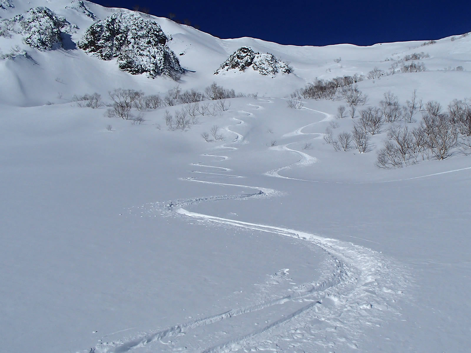 コース:八方尾根スキー場→八方池→八方沢上部の斜面を滑走して登り返し→八方山→八方尾根スキー場