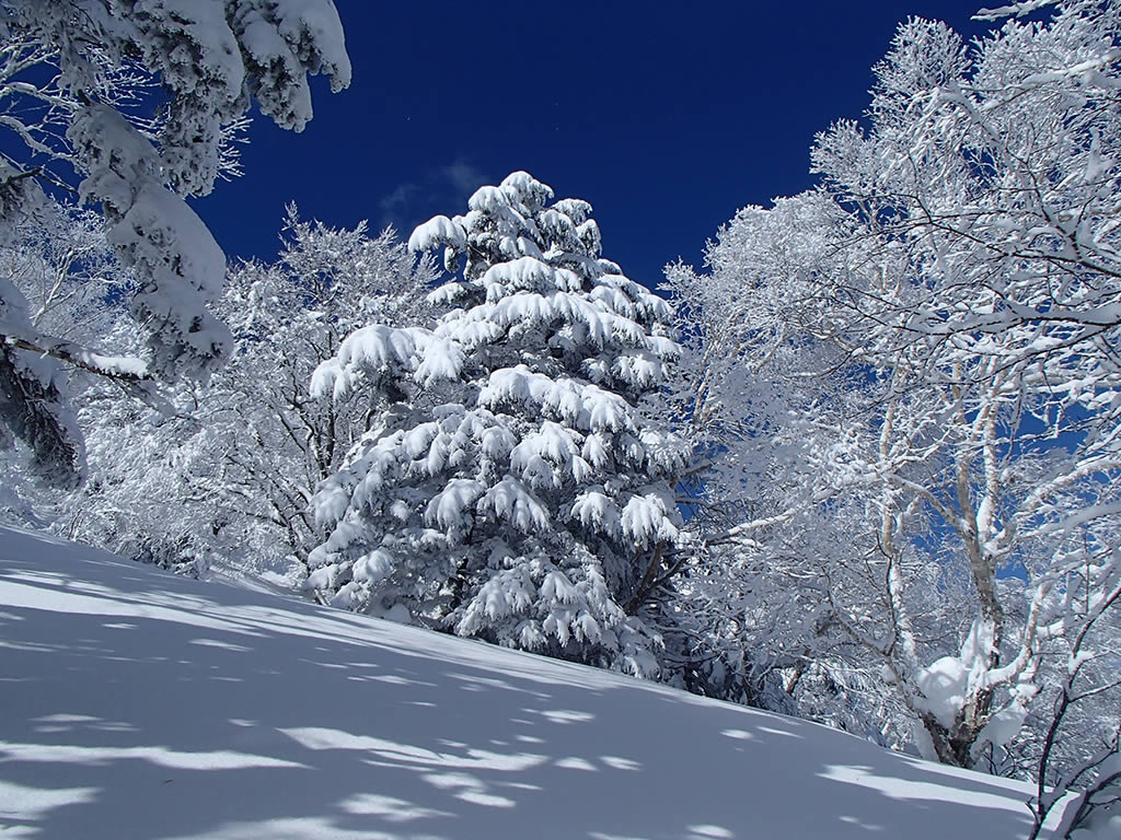 新雪は50cmほども積もっていました。さすが黒姫山、裏切りません。