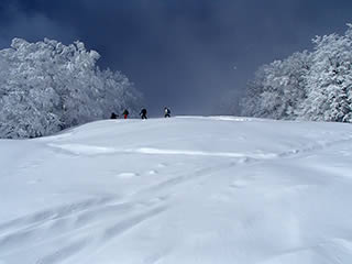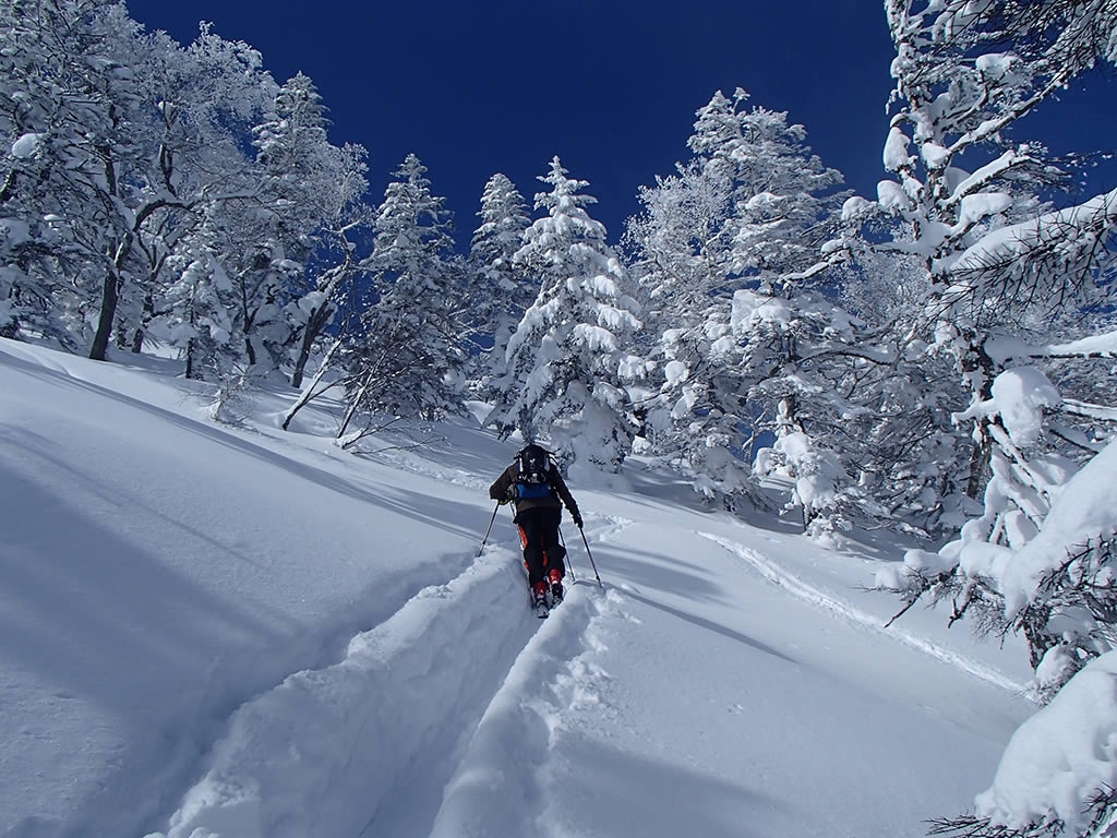 友人ですが、今シーズン本格的なBCは今回が初めてと言うことで、体調によっては途中リタイヤも覚悟していましたが、稜線まで順調に登ることが出来てほっとしました。また私も今回は雪質が良かったこともあり、痙攣等することなく滑ることが出来ました。