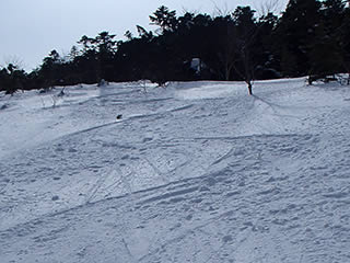 最近降雪が無いのでいつも快適に滑ることの出来るこの斜面はぎだぎだです(^^;。