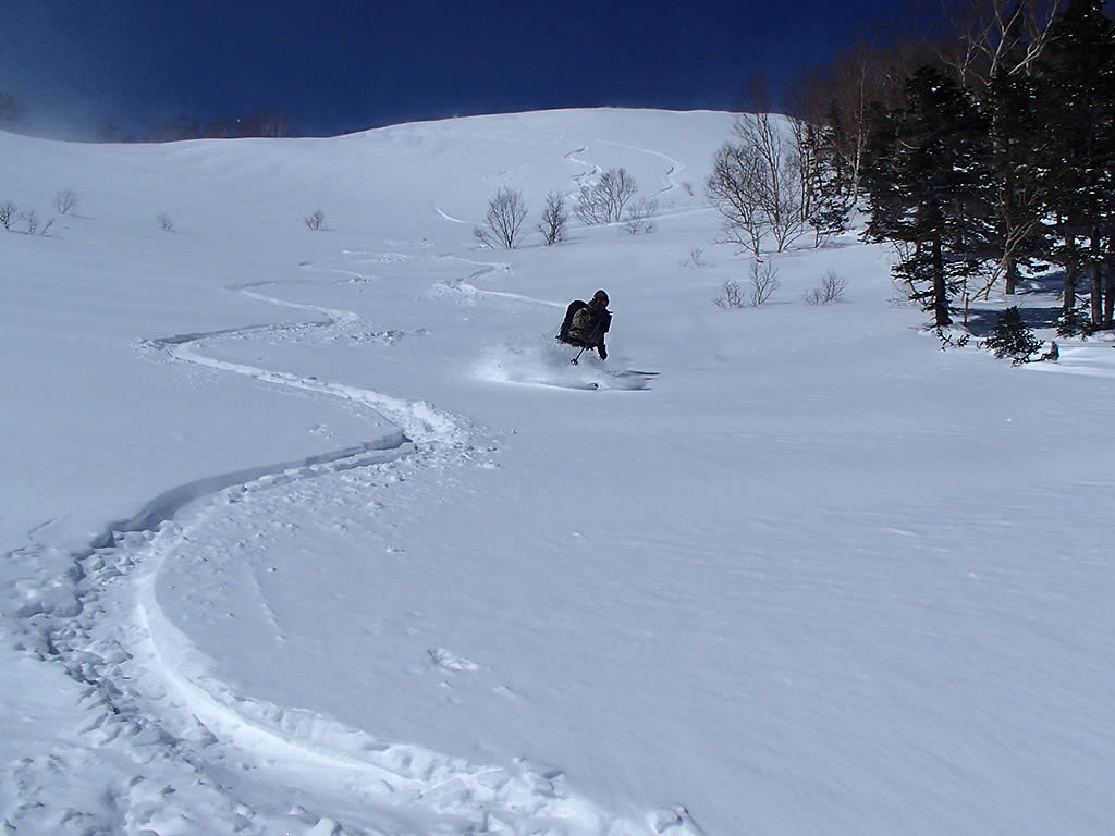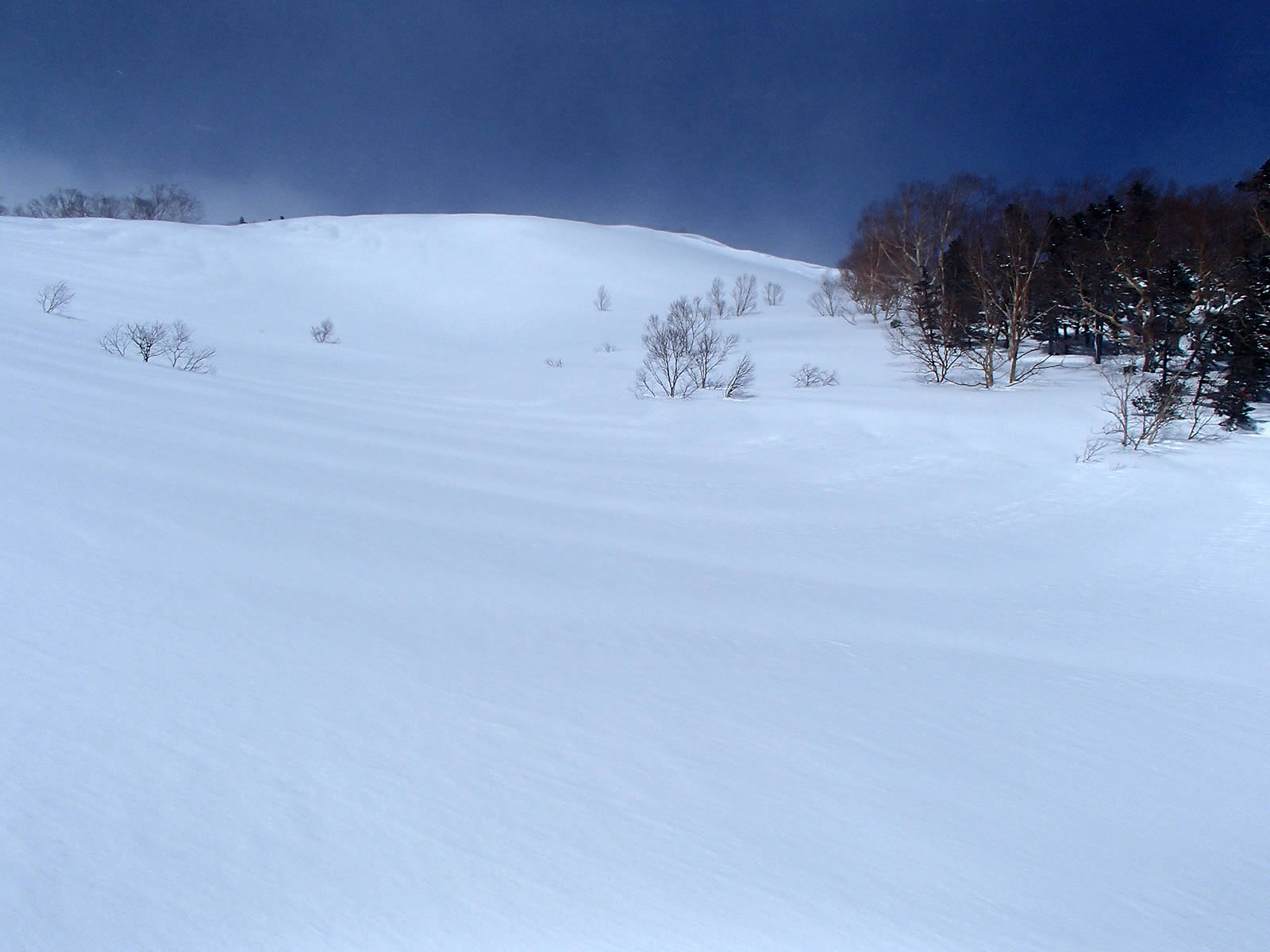 私は滑り始めてすぐに深雪で板が潜ってしまい、痛恨の転倒(^^;。少し重めのパウダーでした。