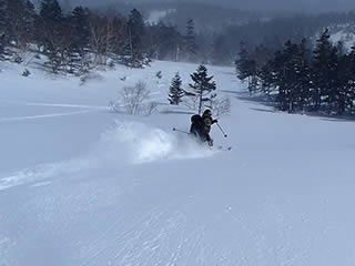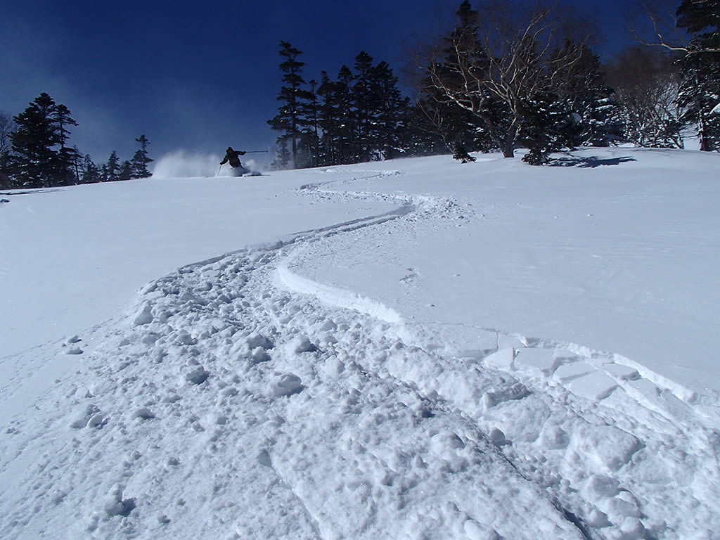 朝まで降っていた新雪のおかげで底付きはしますがパウダーを気持ち良く滑ることが出来ました。そろそろラストパウダーかな。