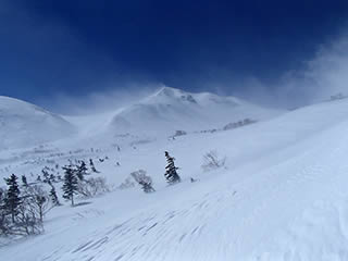 富士見岳。今日の第一候補だった富士見沢の雪質はどうなんだろう。