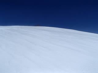 これから登っていく滑り台の斜面。強風の影響で斜面が少し荒れ気味かな。