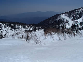 ここも雪がくさって重すぎです(^^;。なんとかターンして滑り降ります。