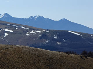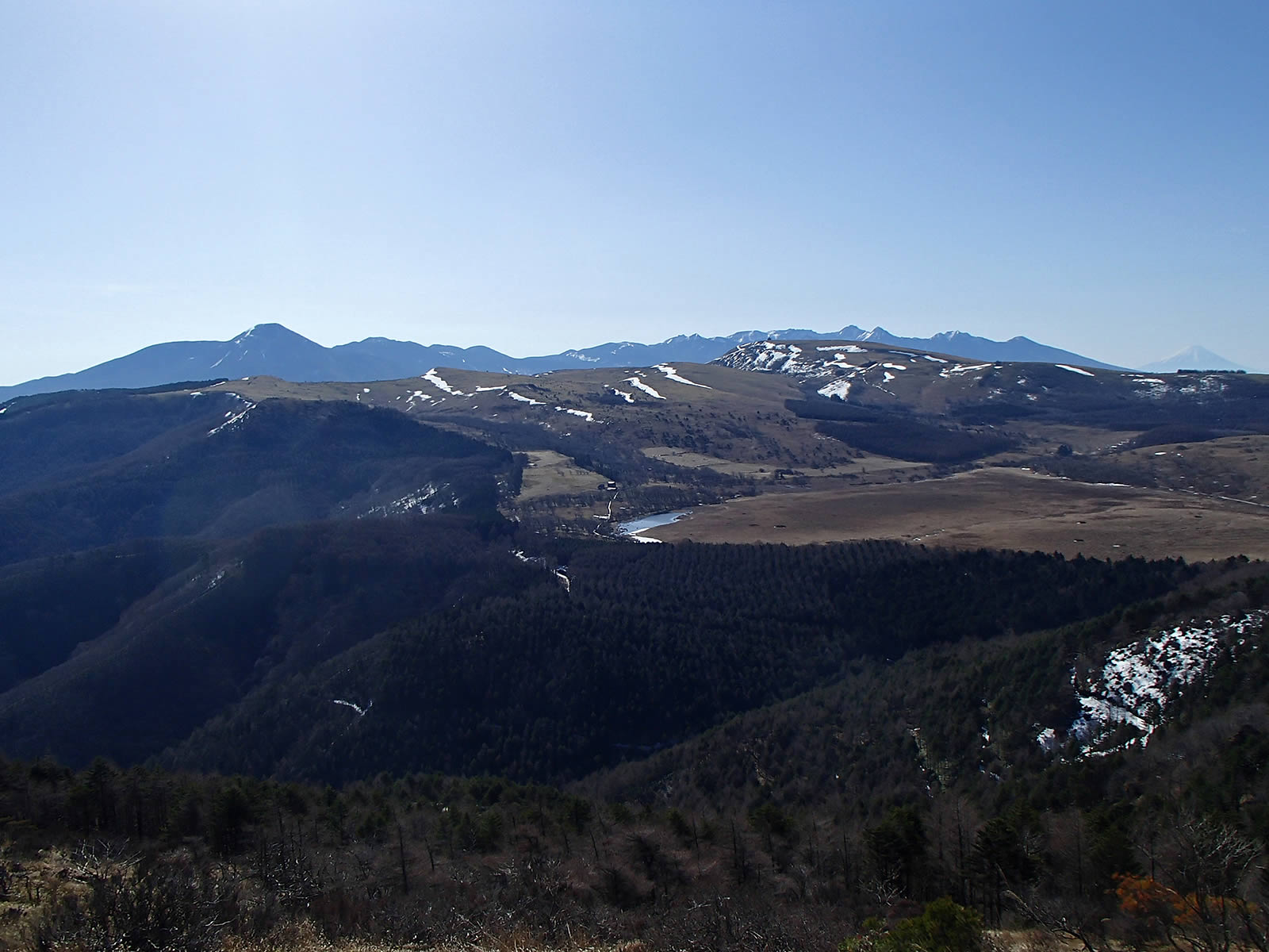 赤岳、横岳、硫黄岳。手前に車山。北面の残雪もだいぶ減ってきました。