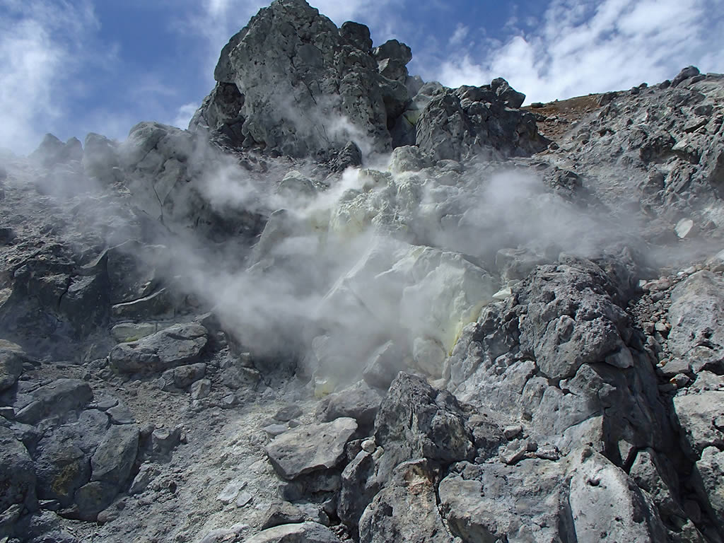 噴煙を背景に一気に滑り降ります(^^)。ここは気持ち良かったです。