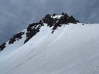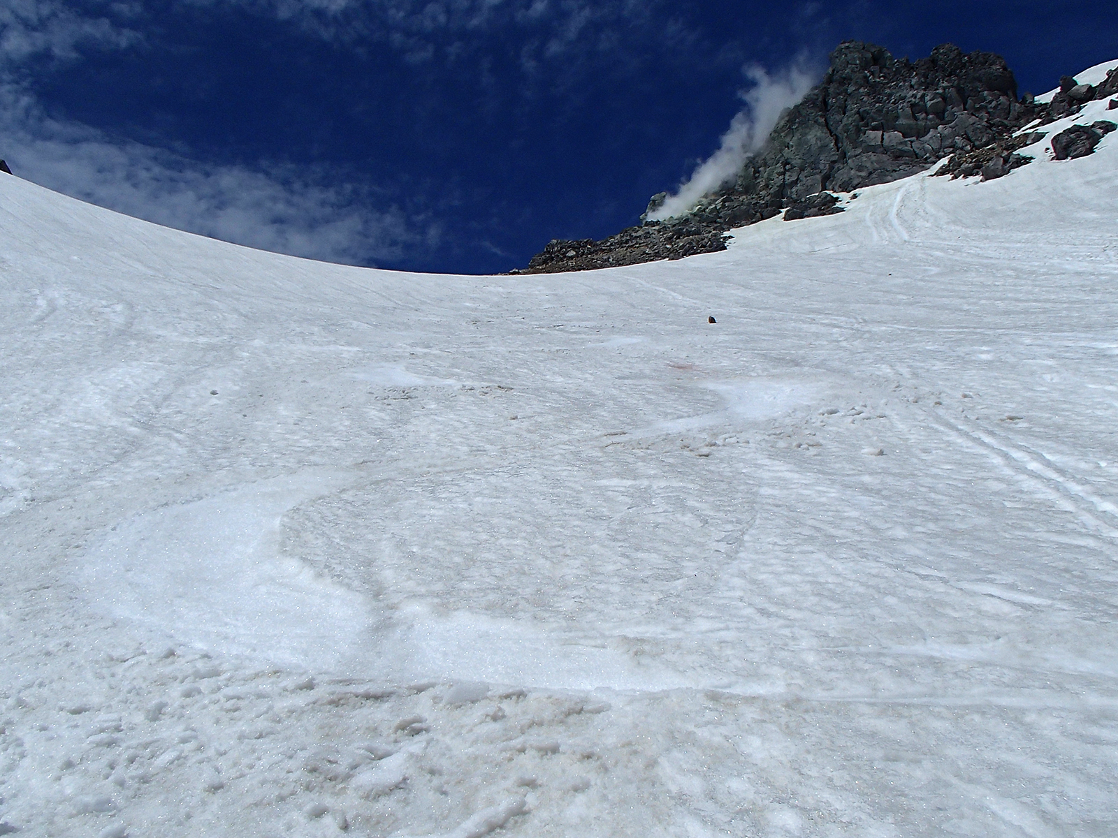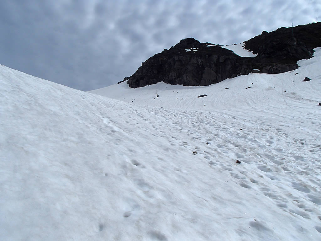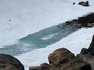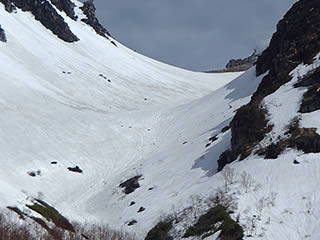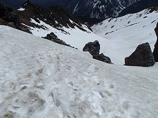 雪渓から岩場に下りる場所。下りてから撮影しました。雪の上にいると下の様子が分からず少し不安でした。