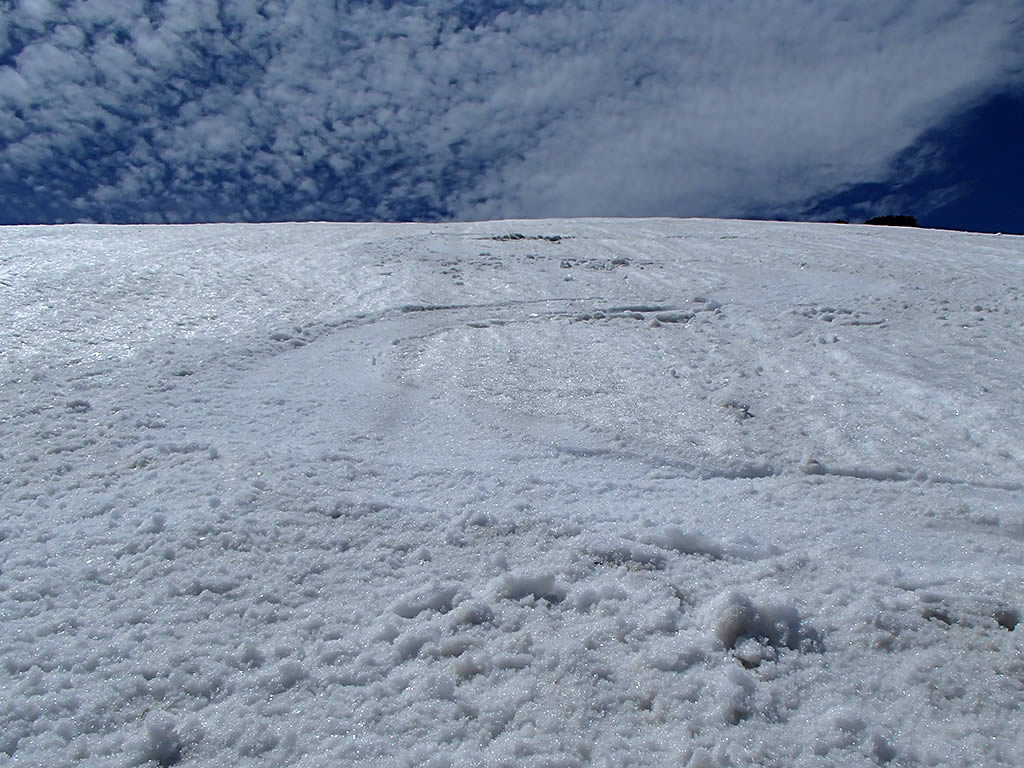 雪の壁をよじ登ります(^^;。一歩一歩慎重に。