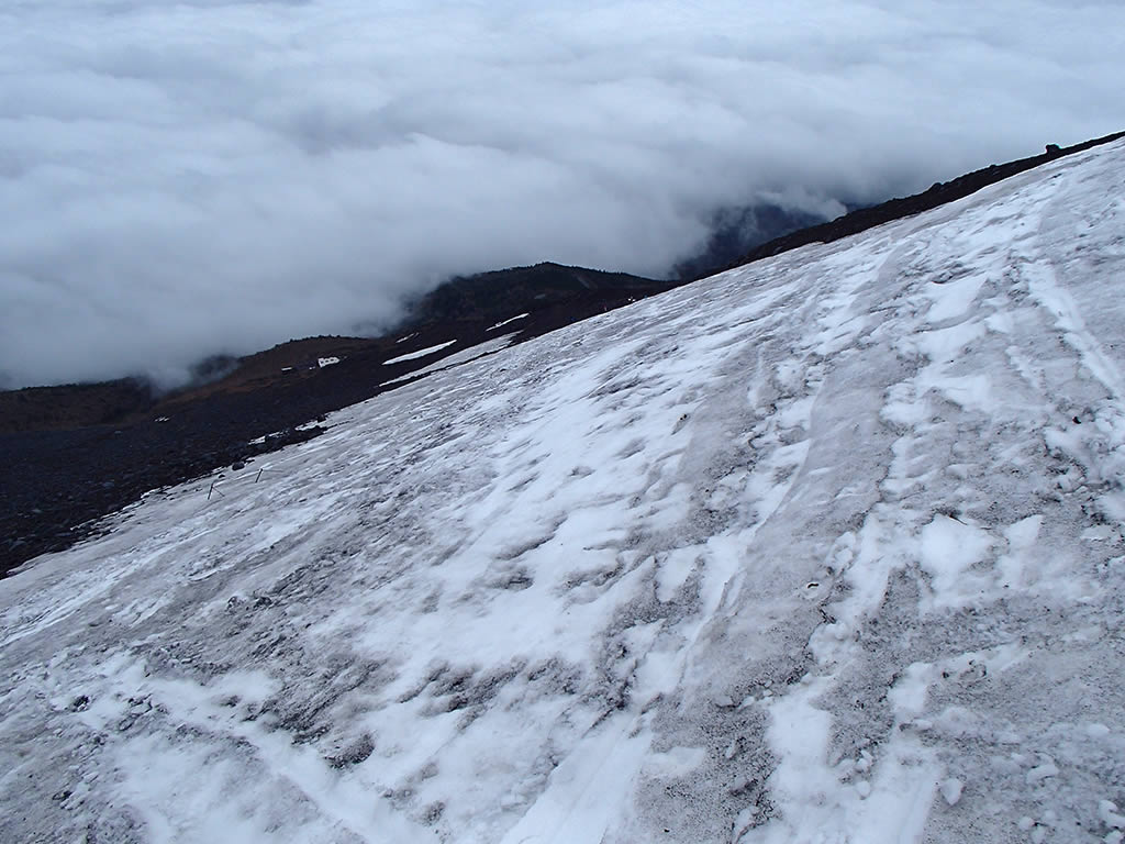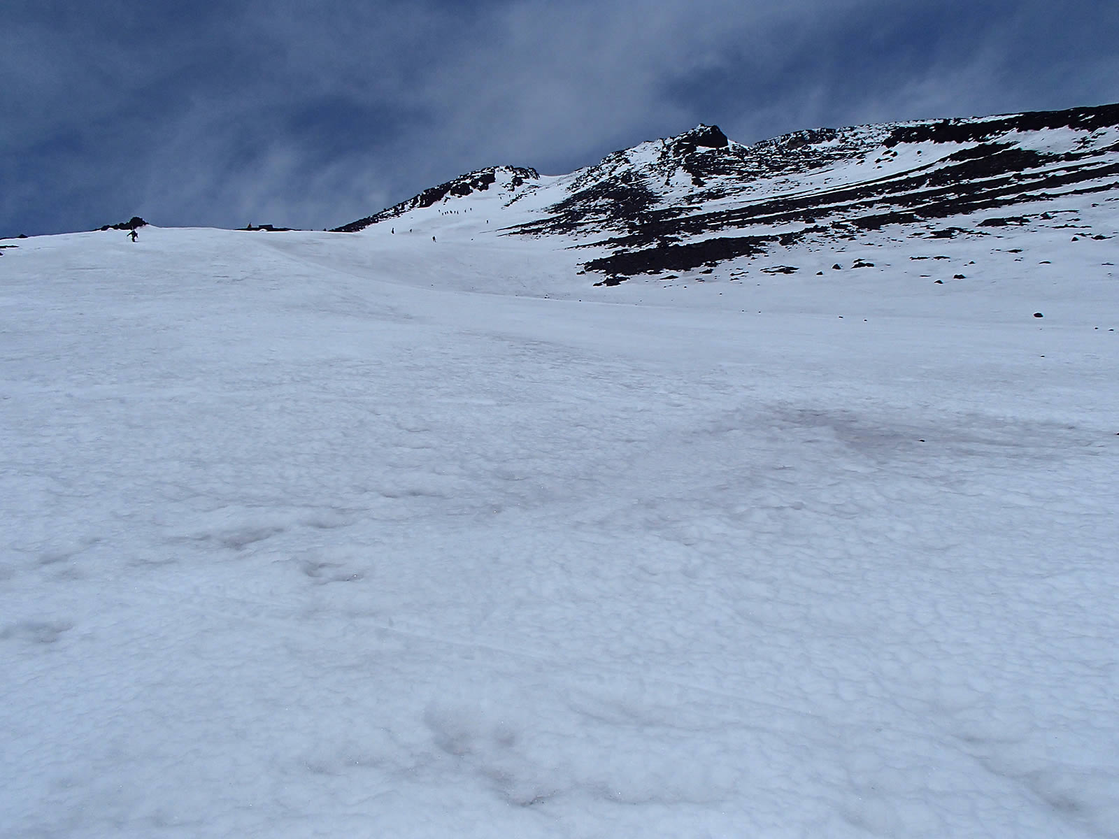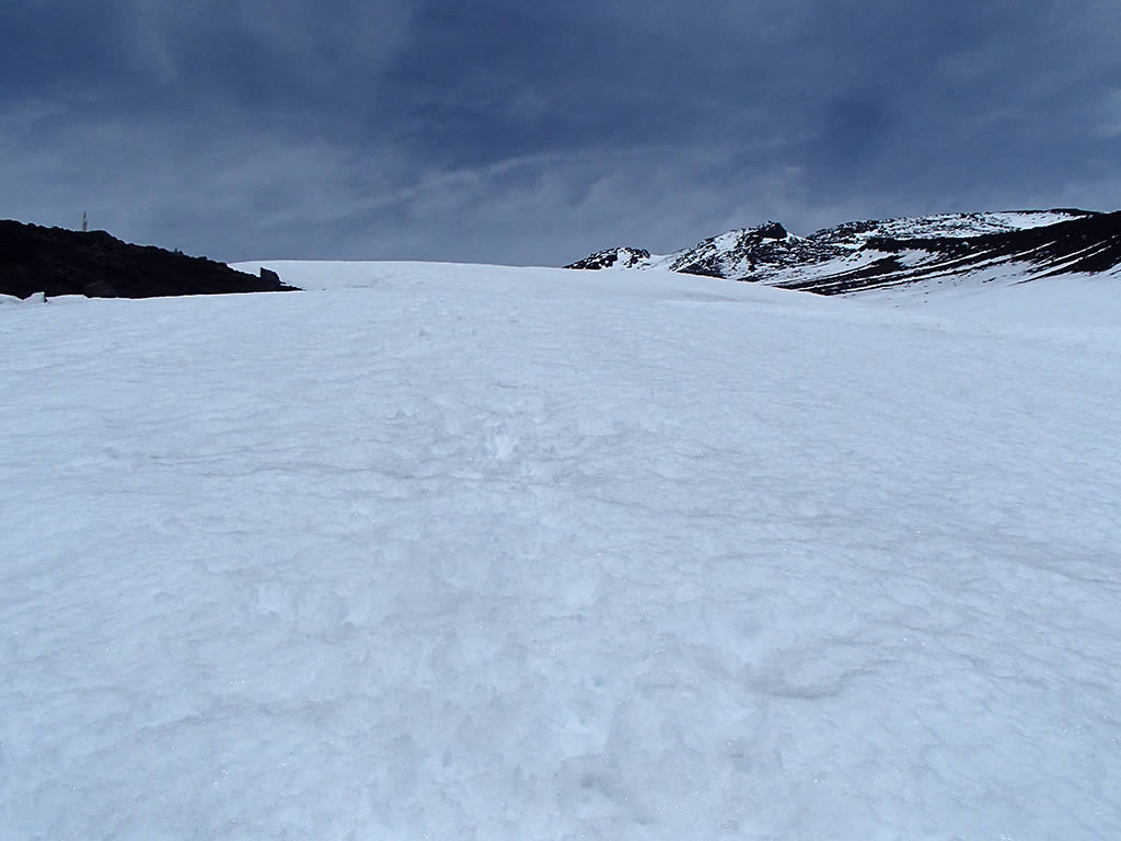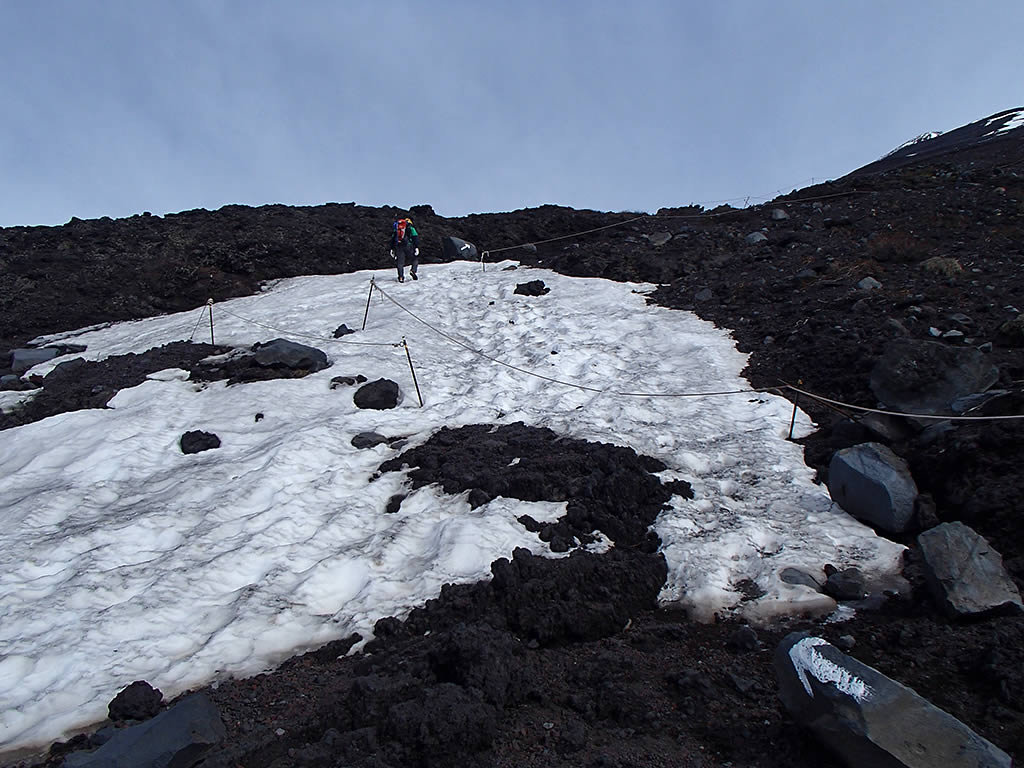 八合目までは基本、登山道を進みますが、雪はあったり無かったり。かちかちではありませんでしたので八合目まではアプローチシューズのままでした。