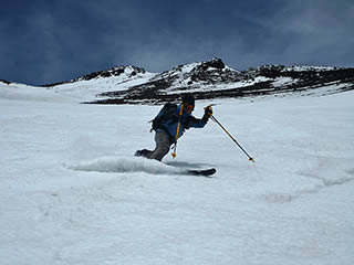 次の2枚は私の滑り。最初に滑った雪渓は雪の状態もまあまあで気持ち良く滑ることが出来ました。