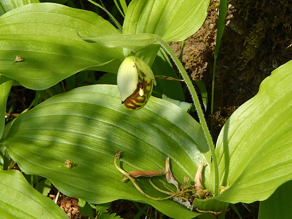 山彦荘前のお花畑のアツモリソウ。まだ咲き始めで花は2つ。