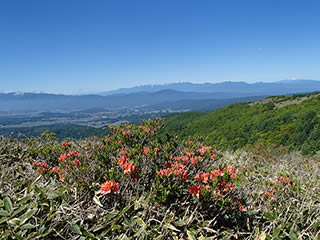 中央アルプスとレンゲツツジ。
