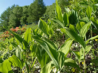 日本スズランですが、入笠湿原の斜面の上部では見頃を迎えていました。ただ斜面下部はまだこれからでした。御所平のお花畑の日本スズランも斜面上部で見頃を迎えていて、辺り一面に甘い香りが漂っていました。