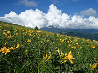 車山肩周辺のニッコウキスゲは五分から六分咲きという感じでほぼ見頃という感じでした。
