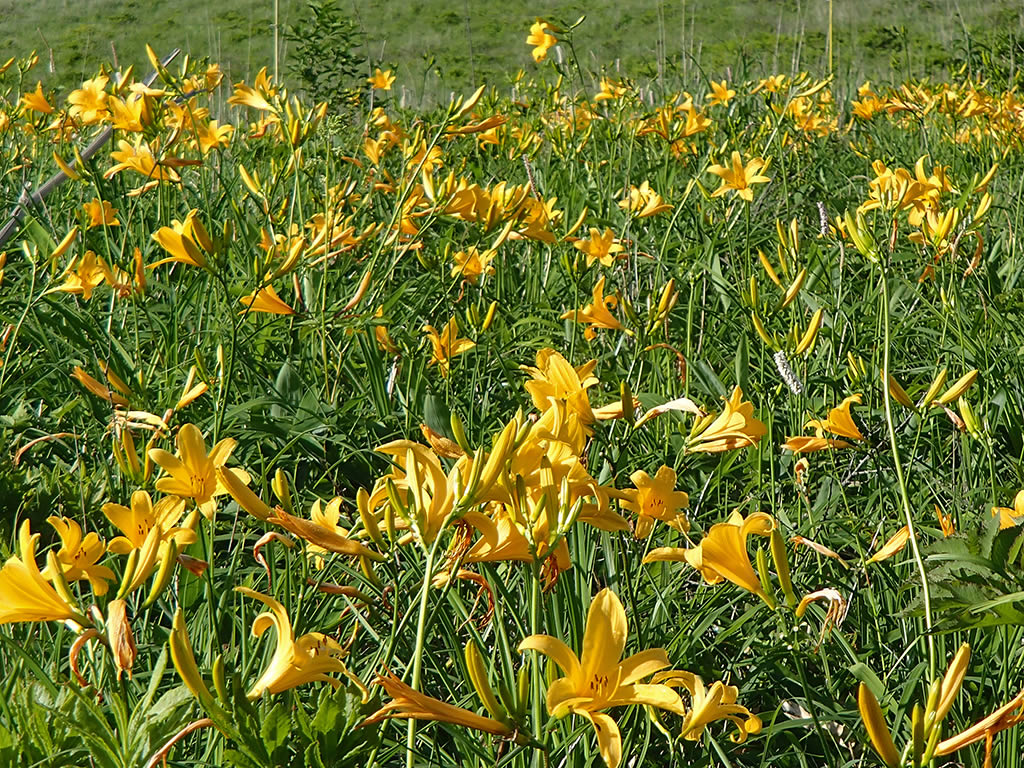 富士見台のニッコウキスゲは斜面が南面で標高が少し低いと言うこともあってか、ちょうど満開で見事でした。この感じだと車山高原側も中腹以下では満開になっていることと思われます。