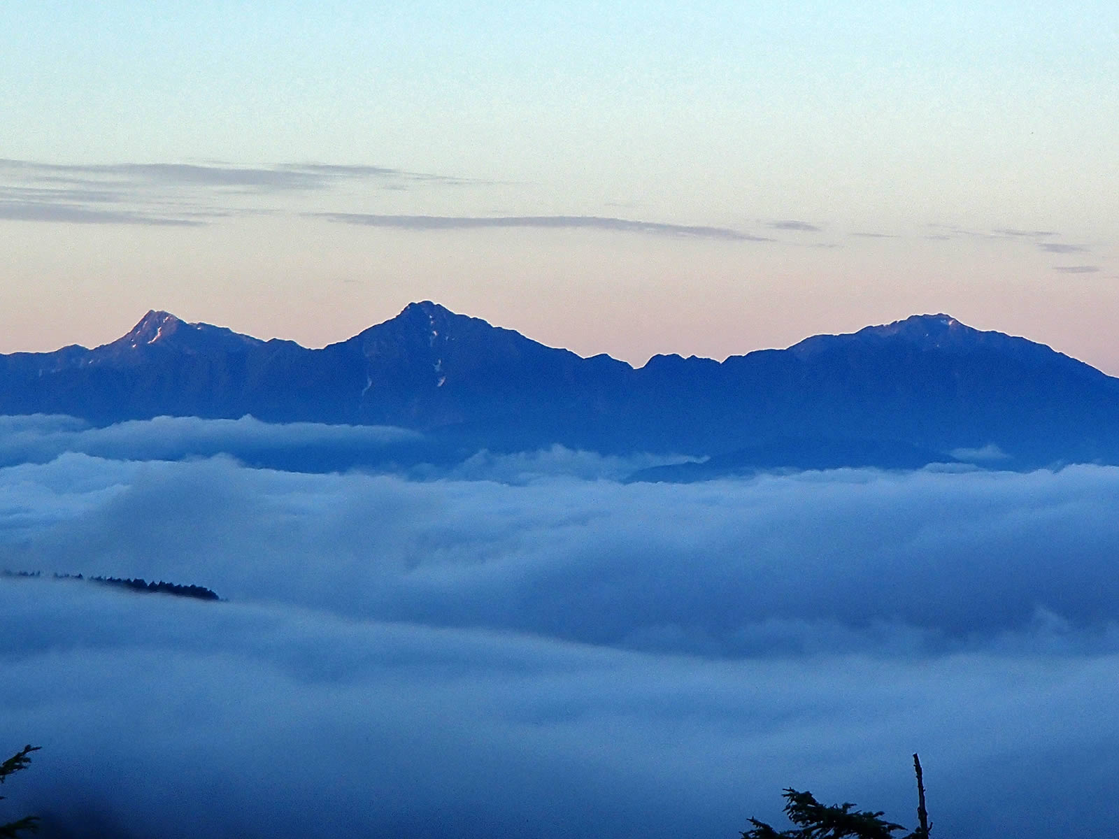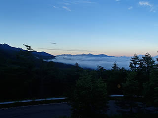 自宅を4時10分に出発し、白駒池近くの有料駐車場に向かいます。向かう途中の眺めが良い場所で車を駐めて南アルプスをぱちり。