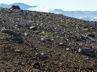 コマクサと天狗岳。コマクサは昨年に比べると少し少なめかな?。