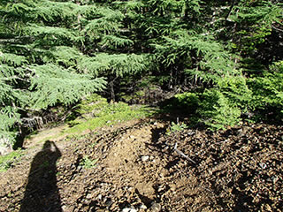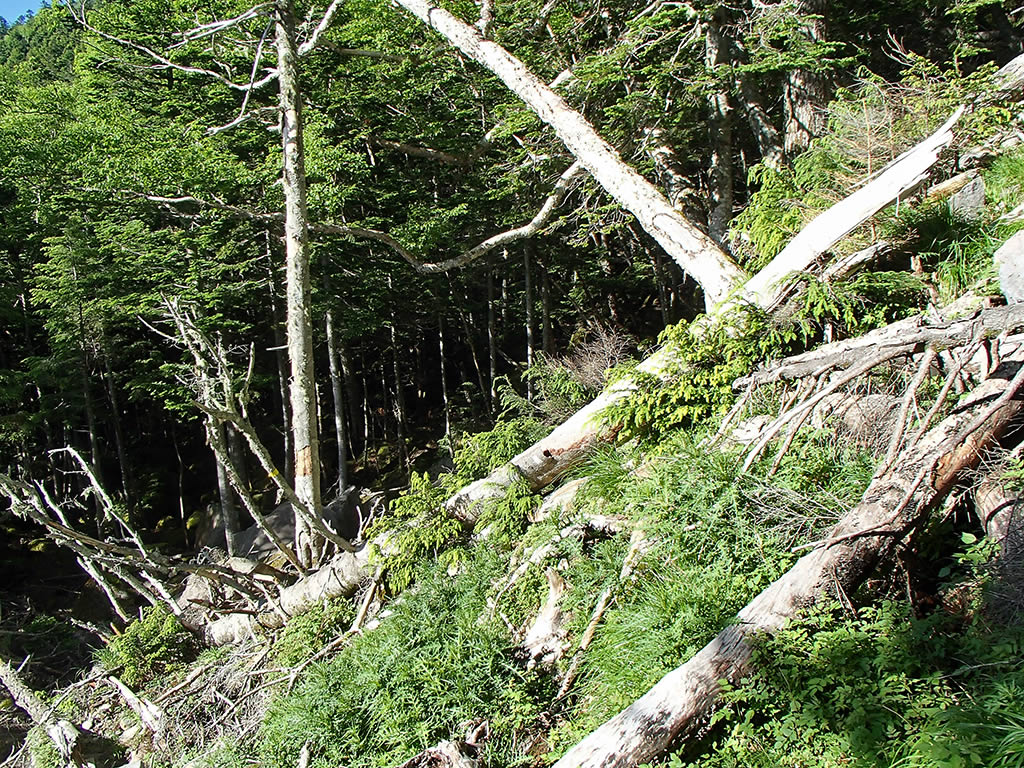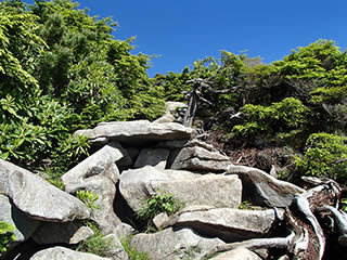 7時26分、コマクサ群生地と別れて樹林帯に入ります。