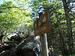 中山峠方向に登るとすぐにこの標識があります。崩落地から下ることなくトラバース気味に来ればこの辺りに出ると思われます。