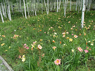 昨年まではゆりが咲いていましたが、今年は替わってヘメロカリス(富士見高原キスゲ)が咲いています。ニッコウキスゲはもう終了していました。