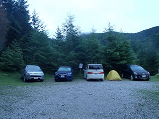 5時10分、桜平の一番上の駐車場に到着。平日の早朝と言うこともあり、10台ほどのスペースの内まだ4台ほしか車が駐まっていませんでした。