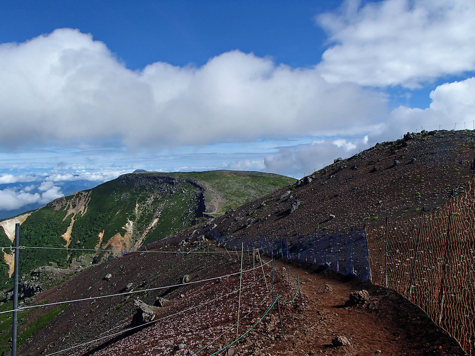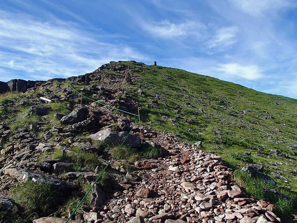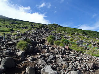 登山道の両側がコマクサ群生地です。ロープ等で保護されています。