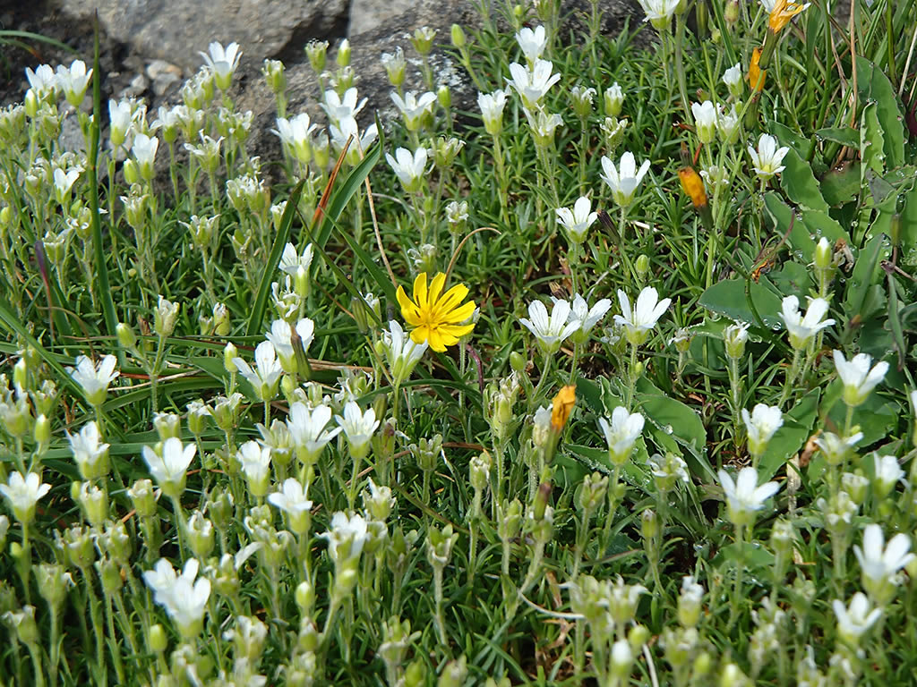 今度は保護エリアの上側の斜面のコマクサを見ていきます。