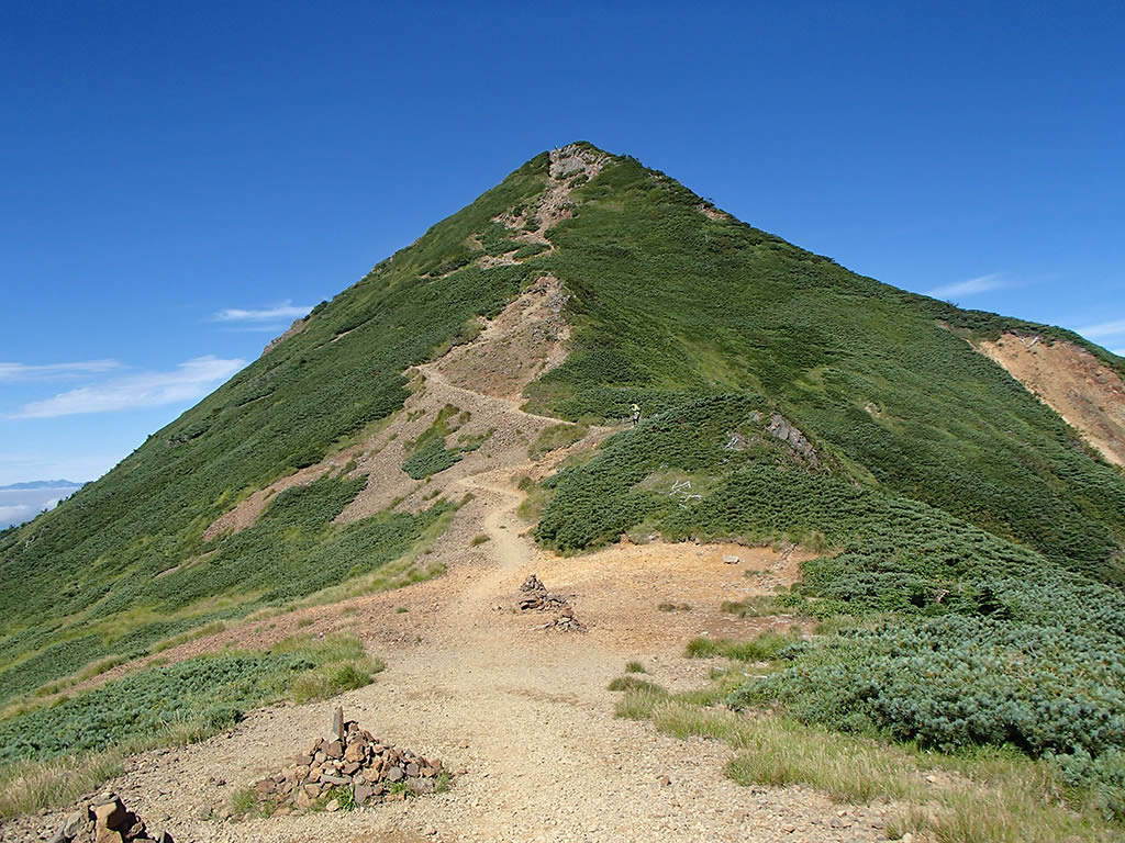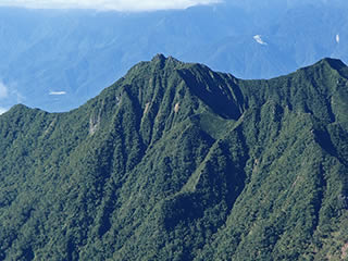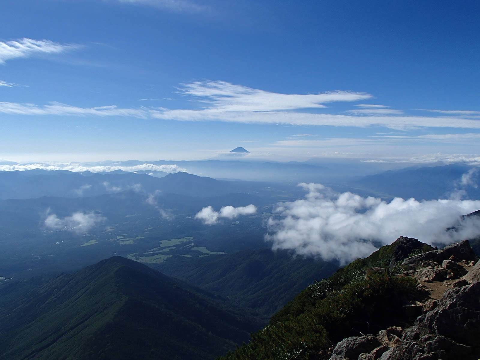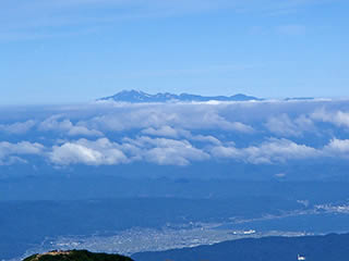 赤岳。すばらしい快晴です。今山頂にいる人は最高の展望を楽しんでいることでしょう。