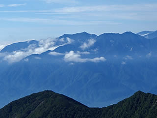 鹿島槍〜白馬岳。白馬岳の辺りは稜線に少しガスがかかっていますね。