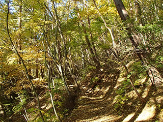 日向山。矢立石から上で紅葉は見頃を迎えています。