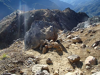 こちら側の登山道脇の噴煙はごくわずかでした。
