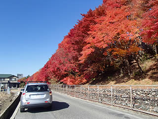 ここからは帰る途中に見かけた中央道沿いの紅葉。ピークです。