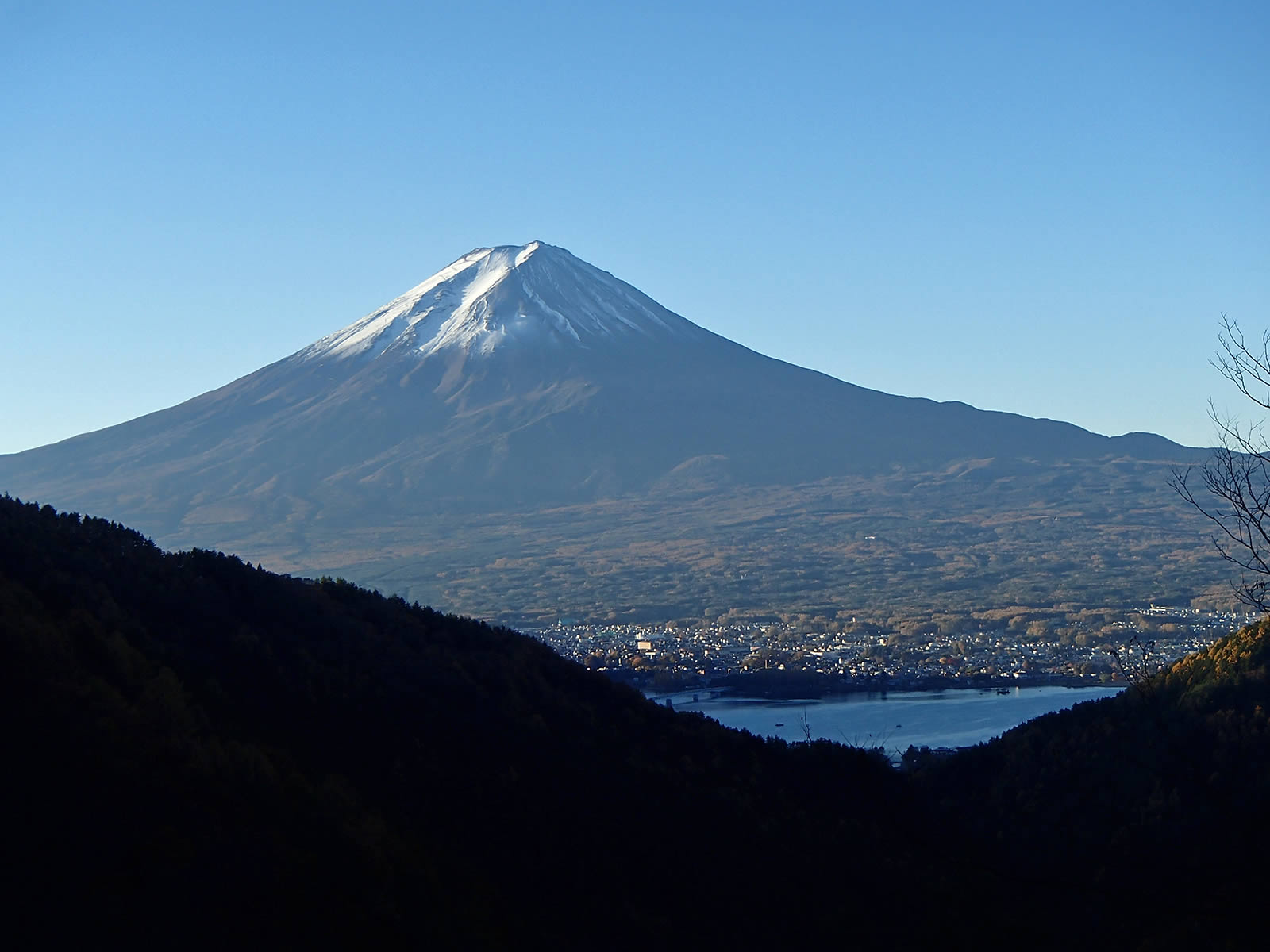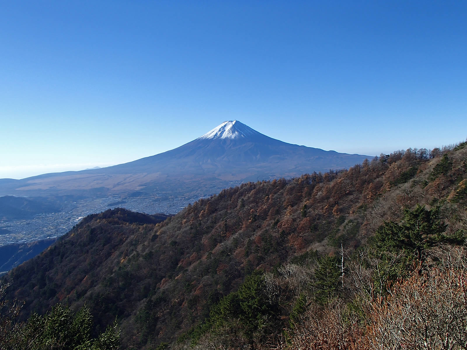 富士山。この秋、雪化粧した富士山を実際にはっきりと見たのはこれが初めてです(^^)。