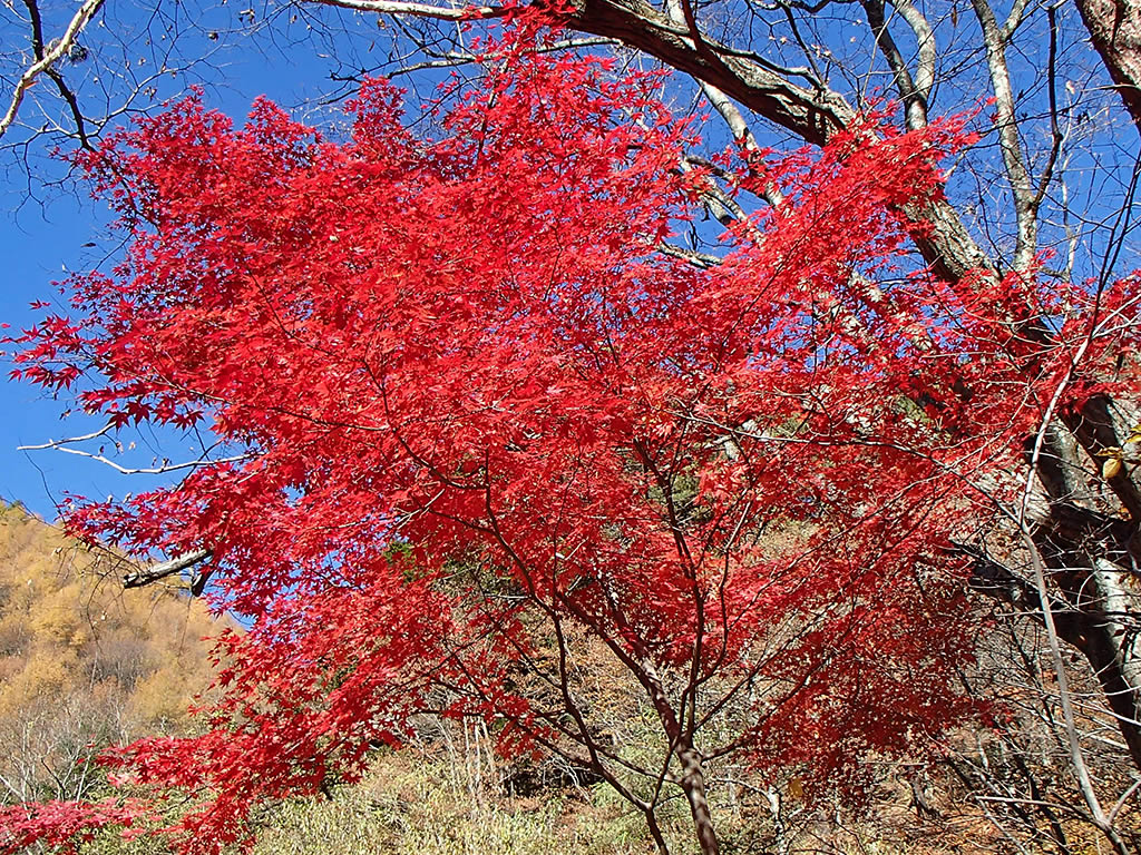 一つ下の駐車場脇にはちょうど見頃のもみじがありました。