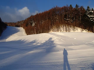 先ほど同様に道路に挟まれた斜面の雪はさらさら感があって気持ち良かったです。
