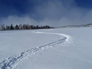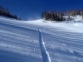 かもしかゲレンデ。積雪が増えましたね。あとひと降りでゲレンデオープン出来そう。 先行者が少なくとも3人はいて楽しんだ模様。ただし吹き荒れる風でシュプールはほとんど消えています。
