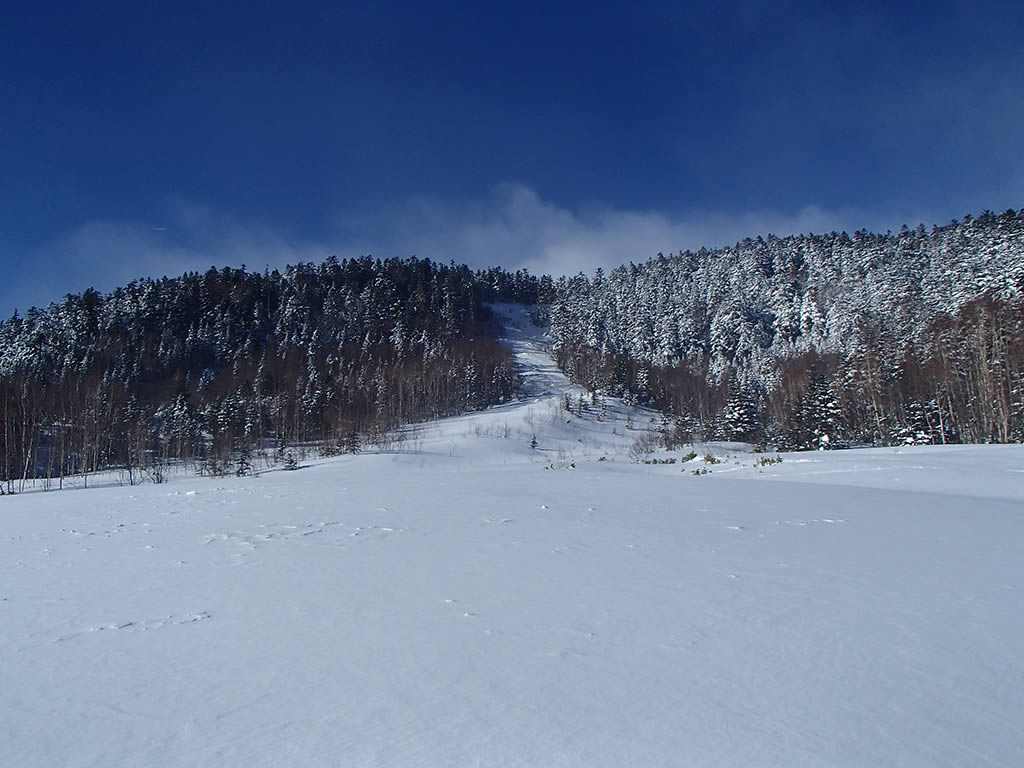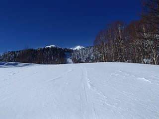 ゲレンデ直登はせずに迂回ルートで登ります。