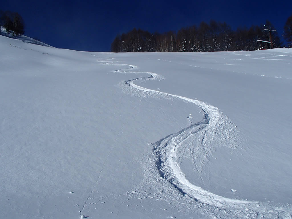 帰る前にかもしかゲレンデのシュプールを振り返ります。