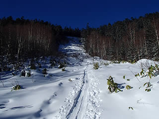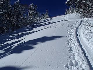 ここはさらさらの新雪が10〜15cmほど積もっていました。帰りにはすっかりぎだぎだに(^^;。