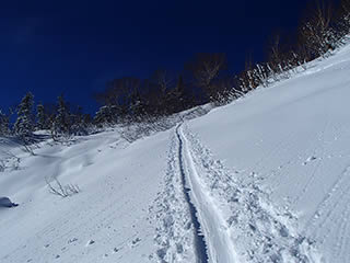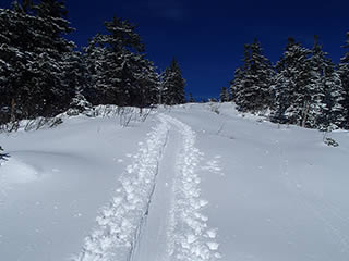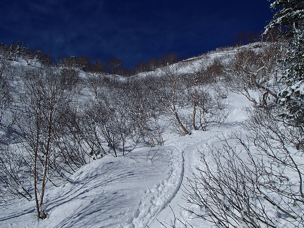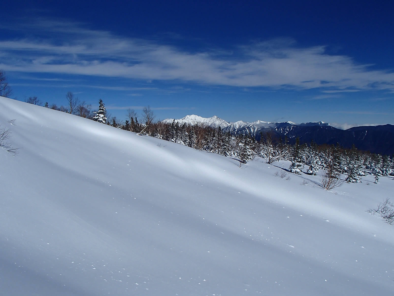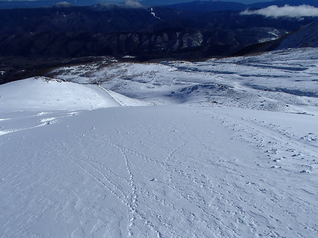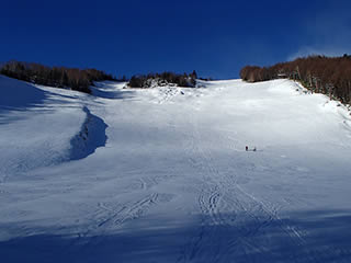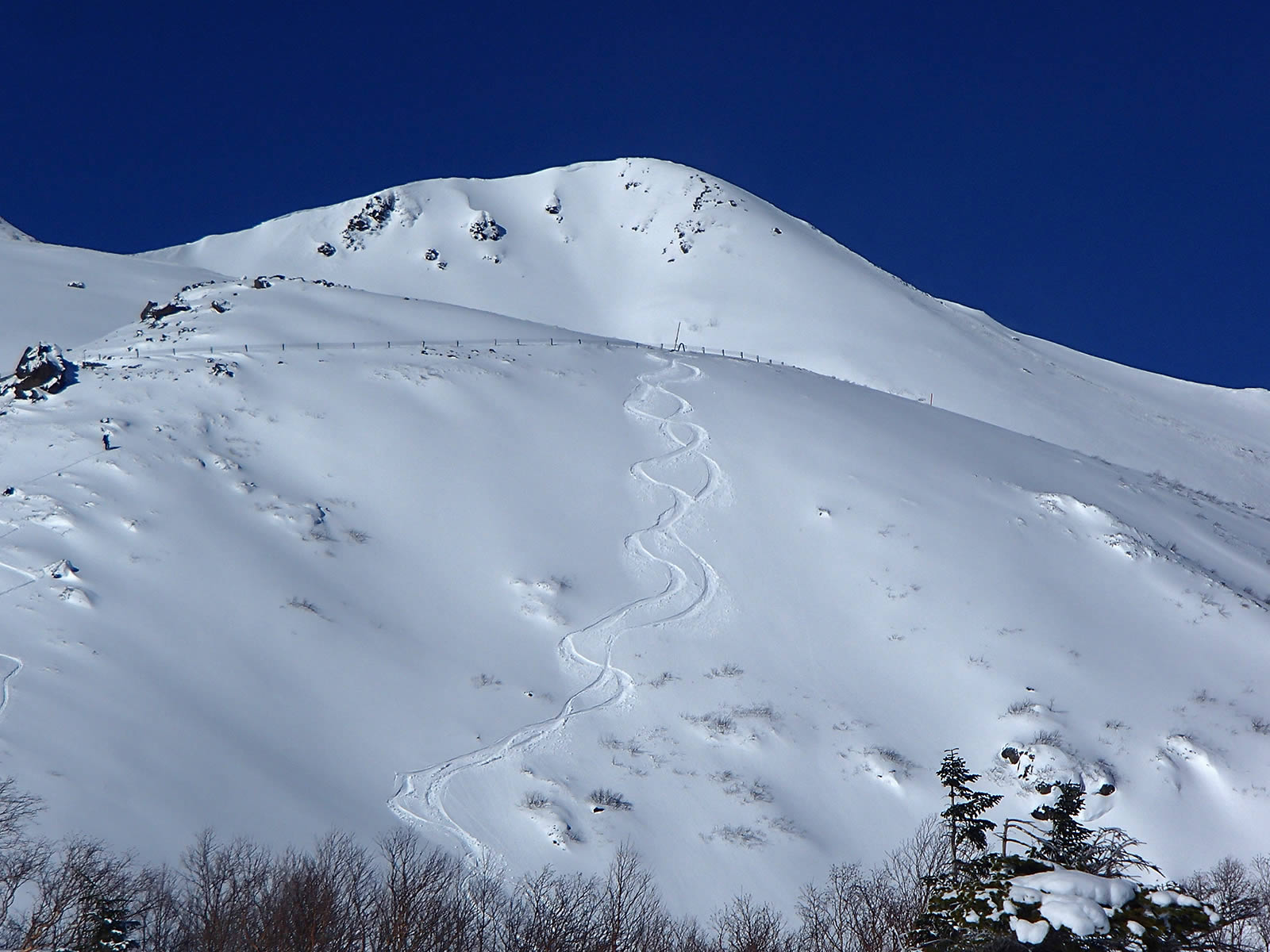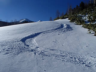 ゲレンデの降雪は期待外れでしたが、位ヶ原から先の積雪は多く、摩利支天滑り台の斜面のクリーミーなパウダーを気持ち良く滑ることが出来ました。また位ヶ原でも吹き溜まりのパウダーを楽しめました。